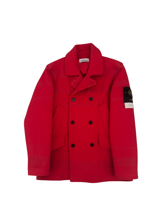 Stone Island Red 'Panno Militare + Righe Reflective' Coat - Large