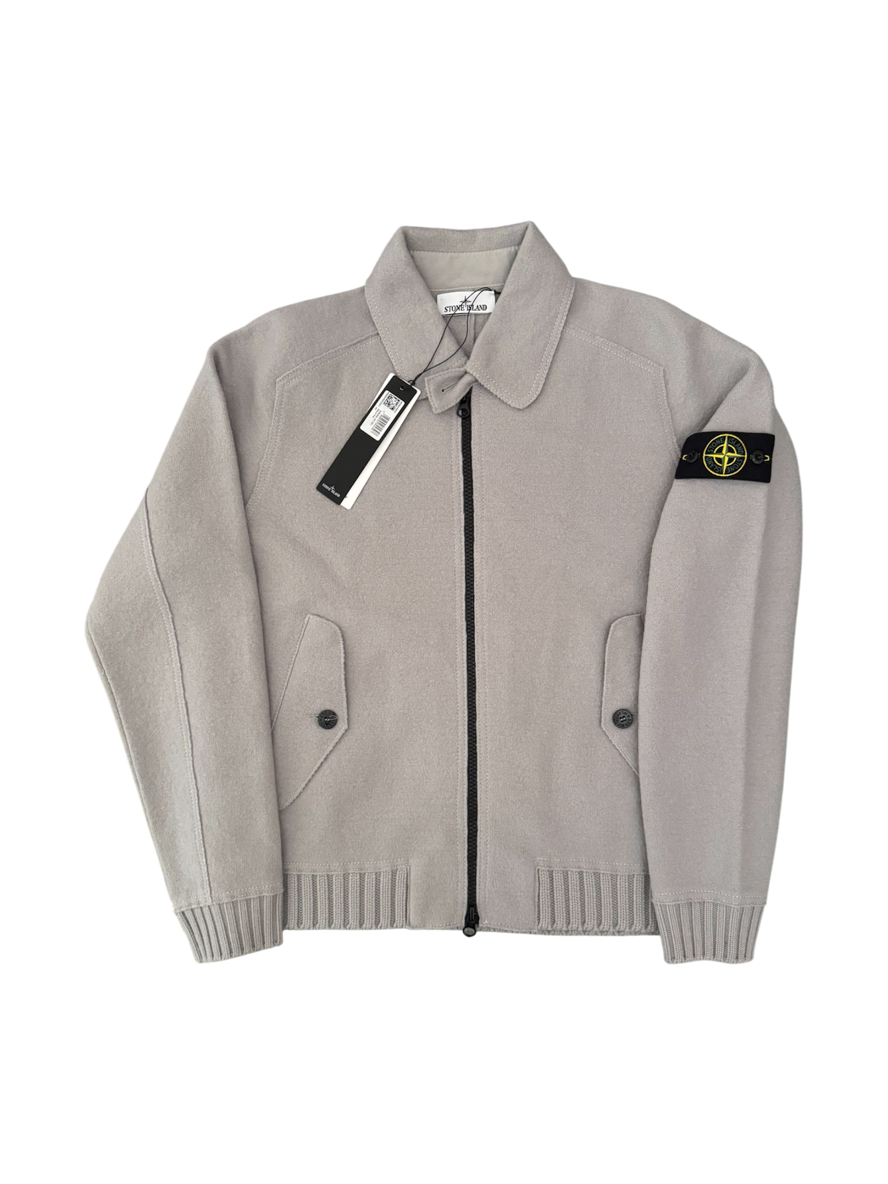 Stone Island 2025 Grey Felted RWS Organic Knit Coach Jacket - Large