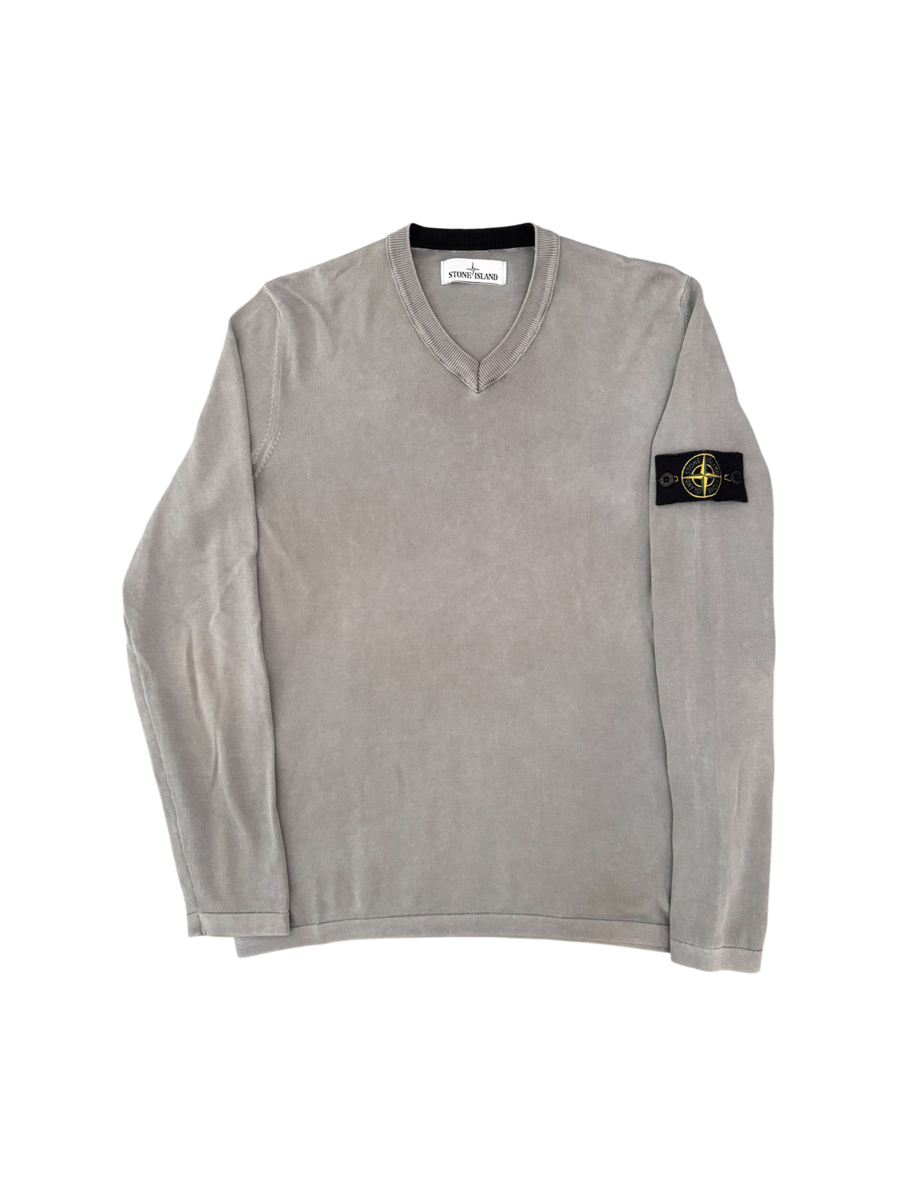 Stone Island Grey V-Neck Sweater - Medium